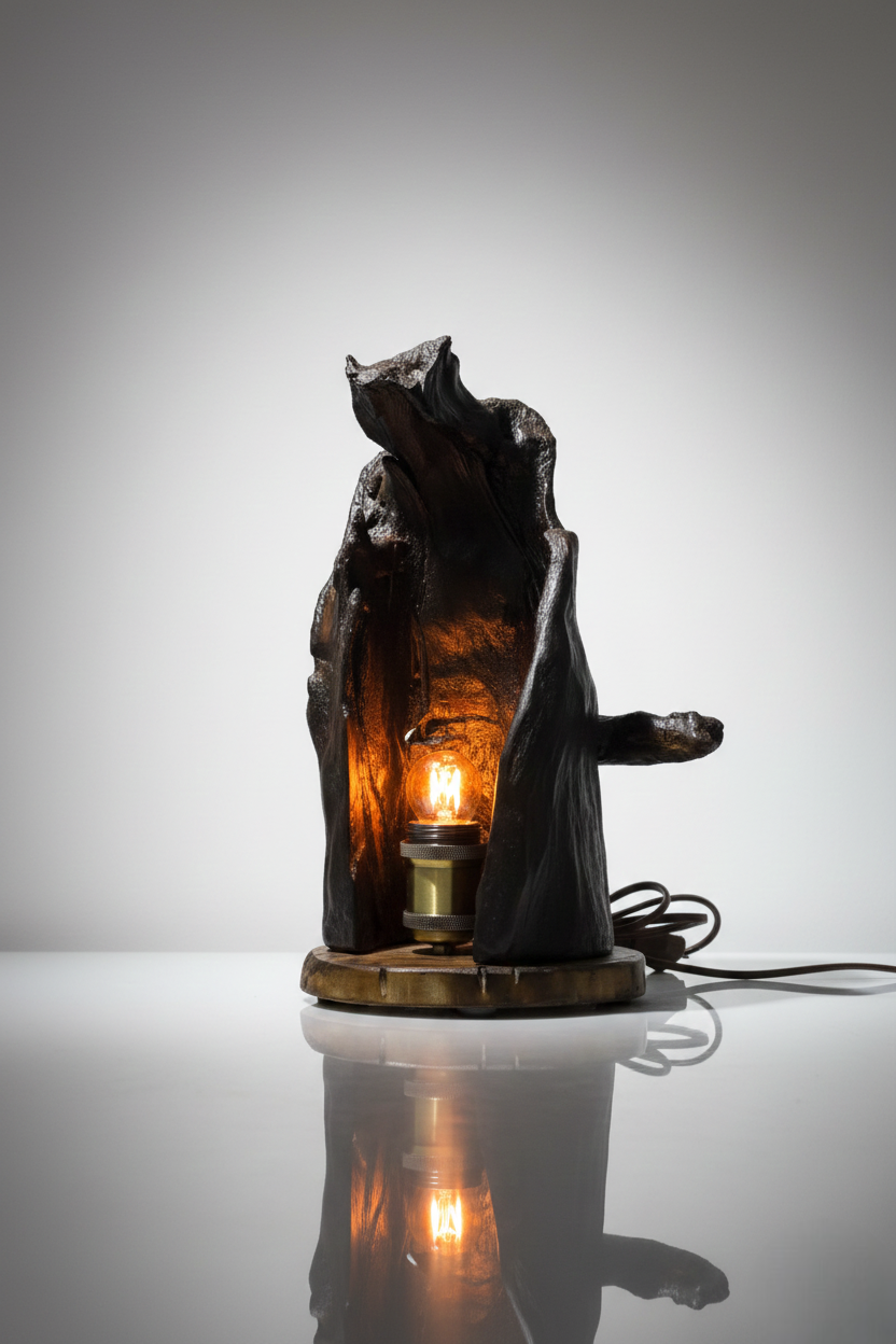 Unikatna Stolna Lampa od Drveta – Spoj Prirode i Industrijskog Dizajna